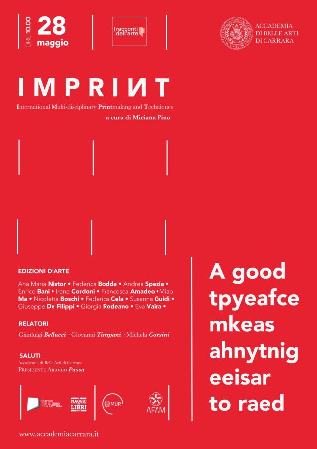 IMPrinT è l’acronimo di “International Multi-disciplinary Printmaking and Techniques”, ma vuole anche suggerire l’impronta e la stampa. I docenti della scuola di grafica avranno la possibilità di far esplorare il mondo antico e nuovo agli studenti; questi ultimi avranno modo di confrontarsi con la realtà e la minuziosità della ricerca di ogni singolo artista incisore.