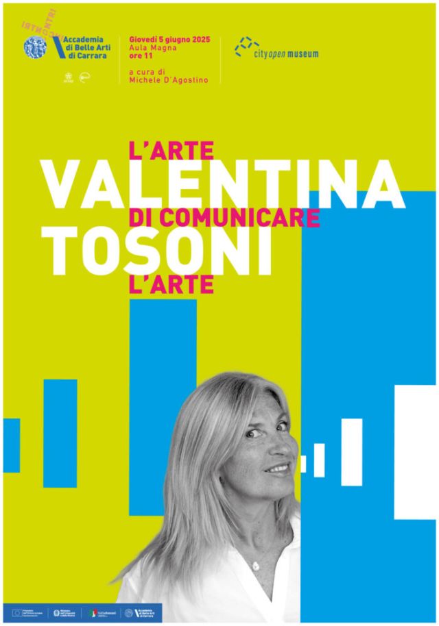 Giornalista di “Repubblica”, conduttrice di una rubrica dedicata all’arte su Radio Capital, docente allo IED – Istituto Europeo di Design di Arte del Costume, Valentina Bosoni è autrice del podcast Storie dell’arte e porterà la sua esperienza in Accademia con un incontro dal titolo “L’arte di comunicare l’arte”, curato da Michele D’Agostino, docente di Tecniche della scultura dell’Accademia di Belle Arti di Carrara.