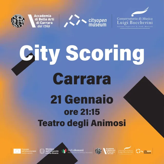 City Scoring considera le città come “soggetti moltiplicatori di immagini”, risultanti dalle attività e dai luoghi che le città stesse esprimono naturalmente. In quanto tali sono film in tempo reale cui poter abbinare una colonna sonora. Il Progetto prevede la realizzazione di 4 concerti in 4 città partners del Progetto COM: Carrara, Firenze, Venezia, Perugia. 12 studenti del Master in Musica Applicata alle Immagini (MAI) del Conservatorio “L. Boccherini”, hanno composto le colonne sonore che saranno abbinate alle immagini di queste città proiettate durante il concerto e impreziosite da effetti luce. La musica verrà eseguita dall’Orchestra del Conservatorio composta da studenti e studentesse delle classi di strumento del Conservatorio, con l’aggiunta di una traccia elettronica e sotto la direzione di uno studente della classe di Direzione d’Orchestra. City Scoring nasce dalla formazione e si apre all’esperienza quotidiana, trasformando le città in materia artistica. Produzione video, supporto tecnico audio, video, luci live e streaming a cura di EMS Produzioni.